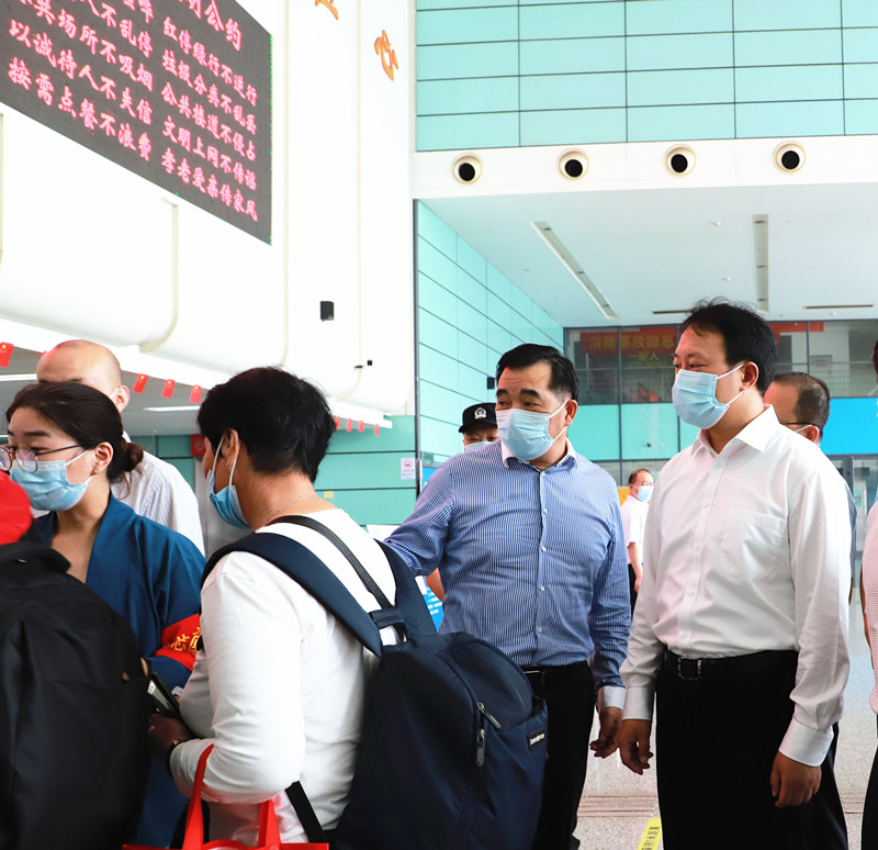 10月1日上午,市交通運(yùn)輸局黨委書記、局長(zhǎng)薛曄帶隊(duì)來到常州汽車站檢查國(guó)慶安全生產(chǎn)和疫情防控工作,常運(yùn)集團(tuán)董事長(zhǎng)兼總經(jīng)理謝星,副總經(jīng)理費(fèi)軒龍、朱平春陪同檢查。薛曄一行檢查了車站旅客到達(dá)區(qū)、進(jìn)站口的防疫政策執(zhí)行情況,查看了實(shí)名制進(jìn)站乘車和進(jìn)站安檢,詳細(xì)了解了國(guó)慶期間的旅客組織情況,對(duì)假期堅(jiān)守一線的站務(wù)員、駕駛員進(jìn)行慰問,強(qiáng)調(diào)公司要認(rèn)真落實(shí)安全生產(chǎn)和疫情防控的要求,叮囑職工們既要服務(wù)好旅客、確保旅客平安出行,也要做好疫情個(gè)人防護(hù)。